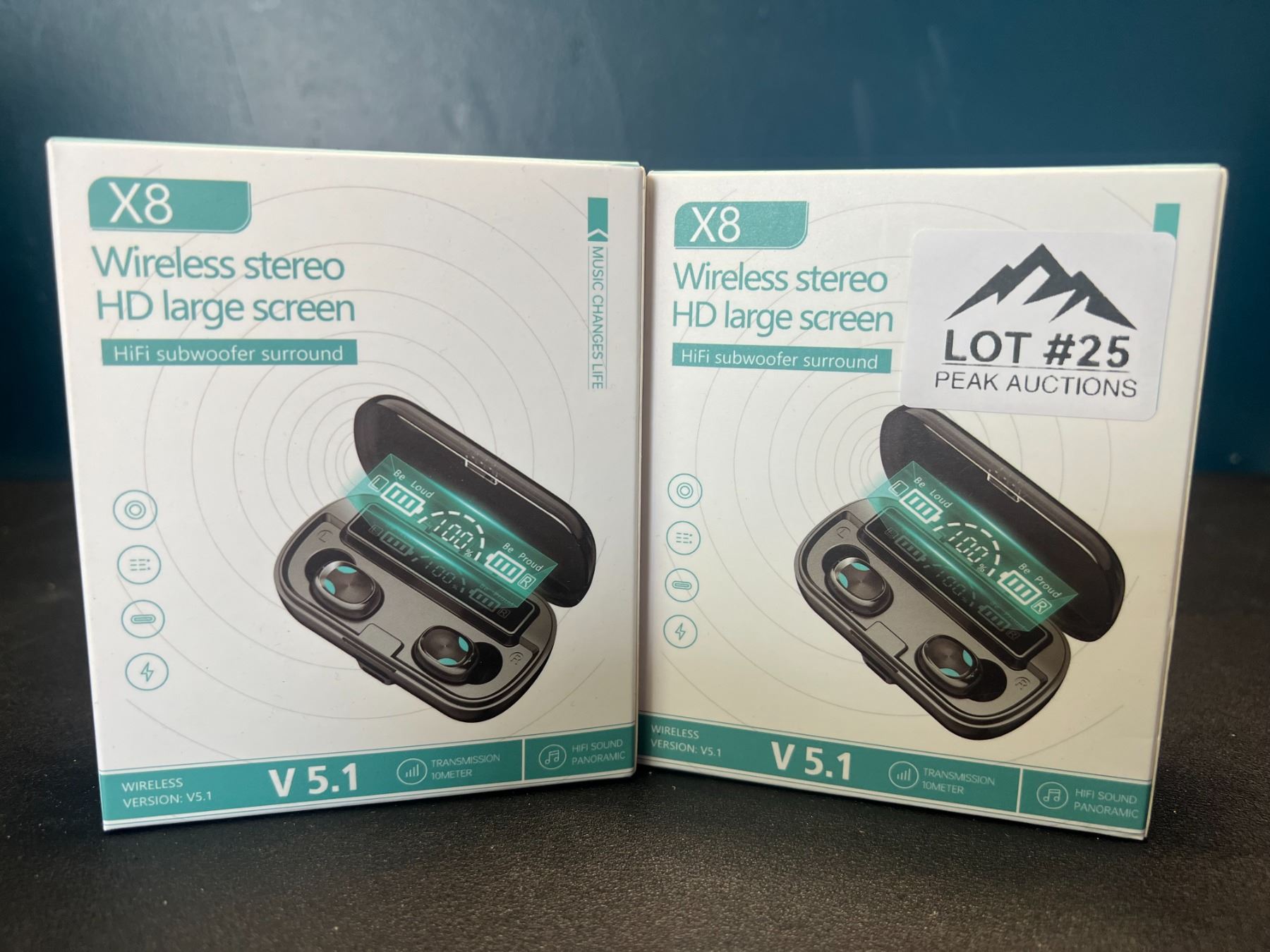 Lot of 2 Pairs of X8 Wireless Bluetooth Earbuds