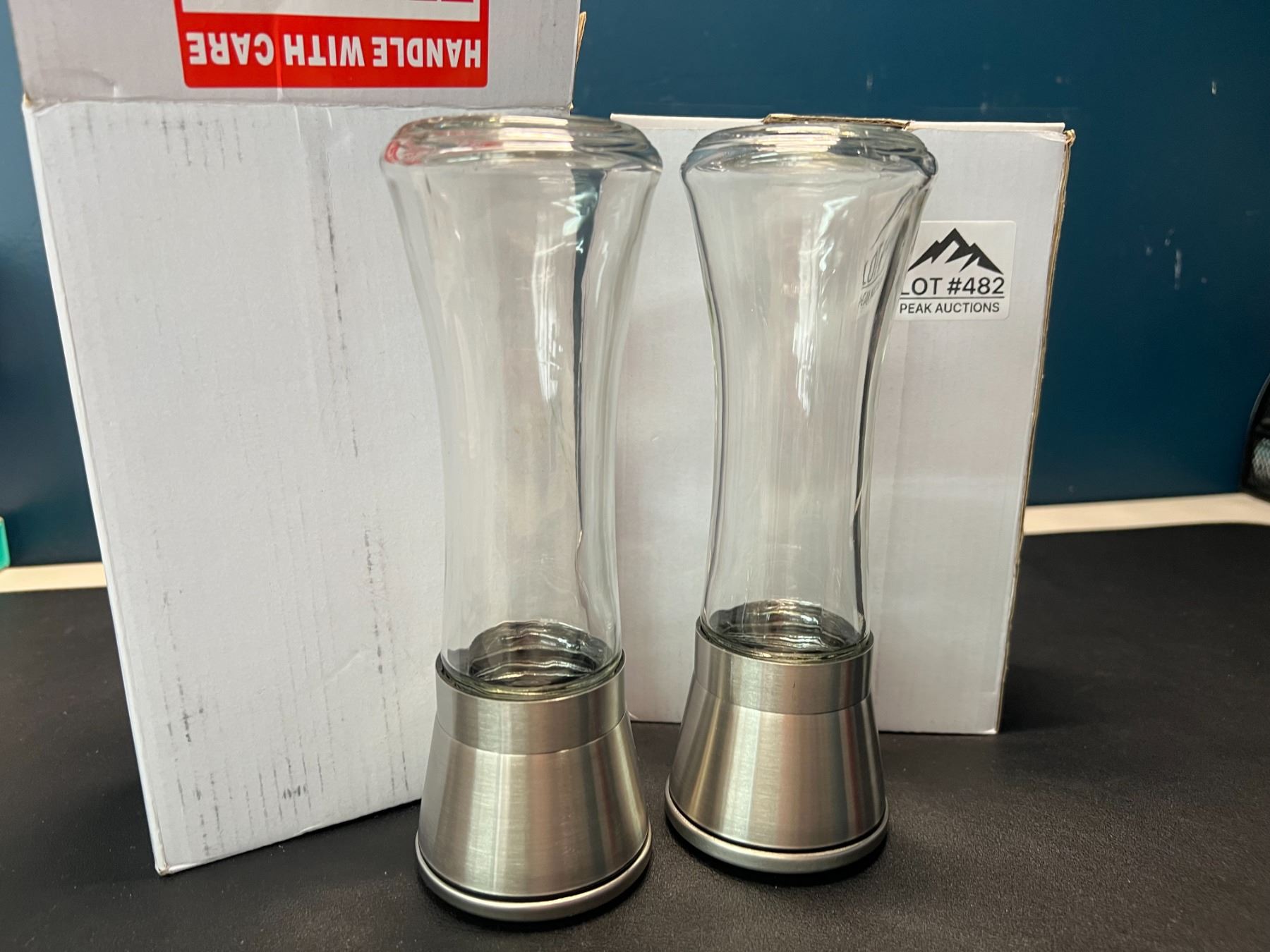 Lot of 2 Sets of Glass Salt and Pepper Grinders