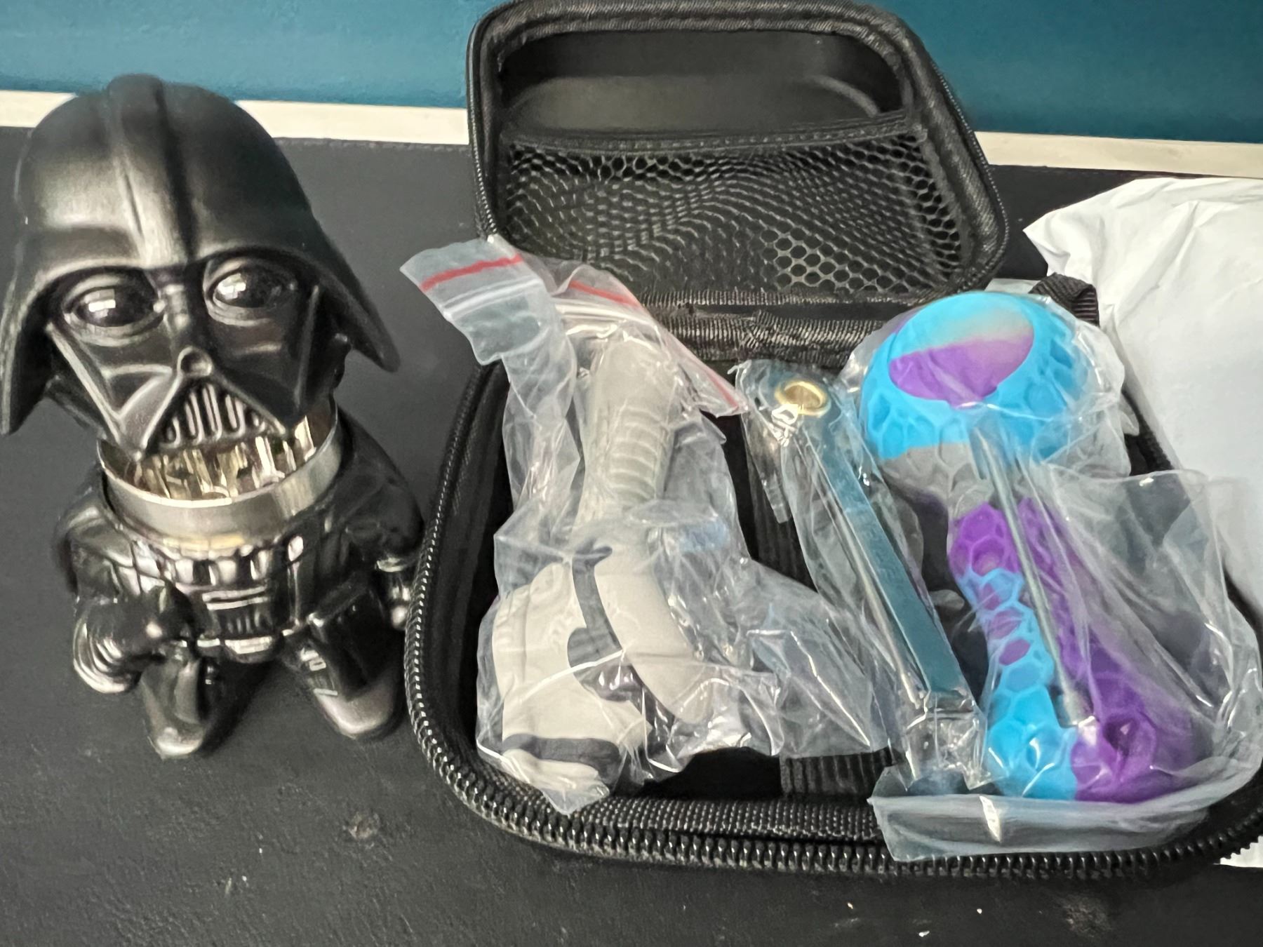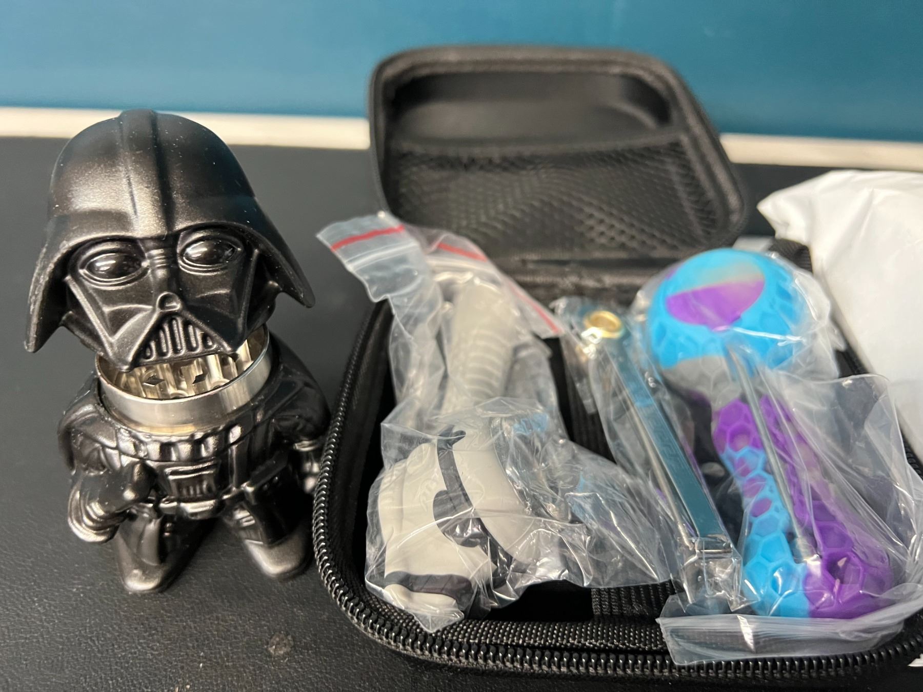 - Star wars darth vader herb grinder, also includes 2 pipes per set