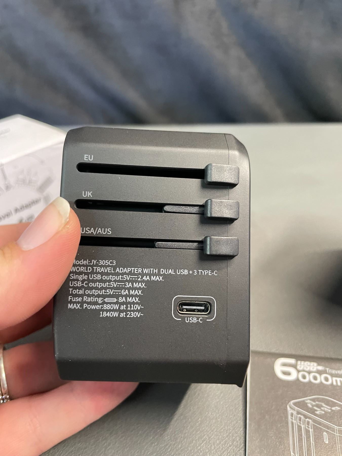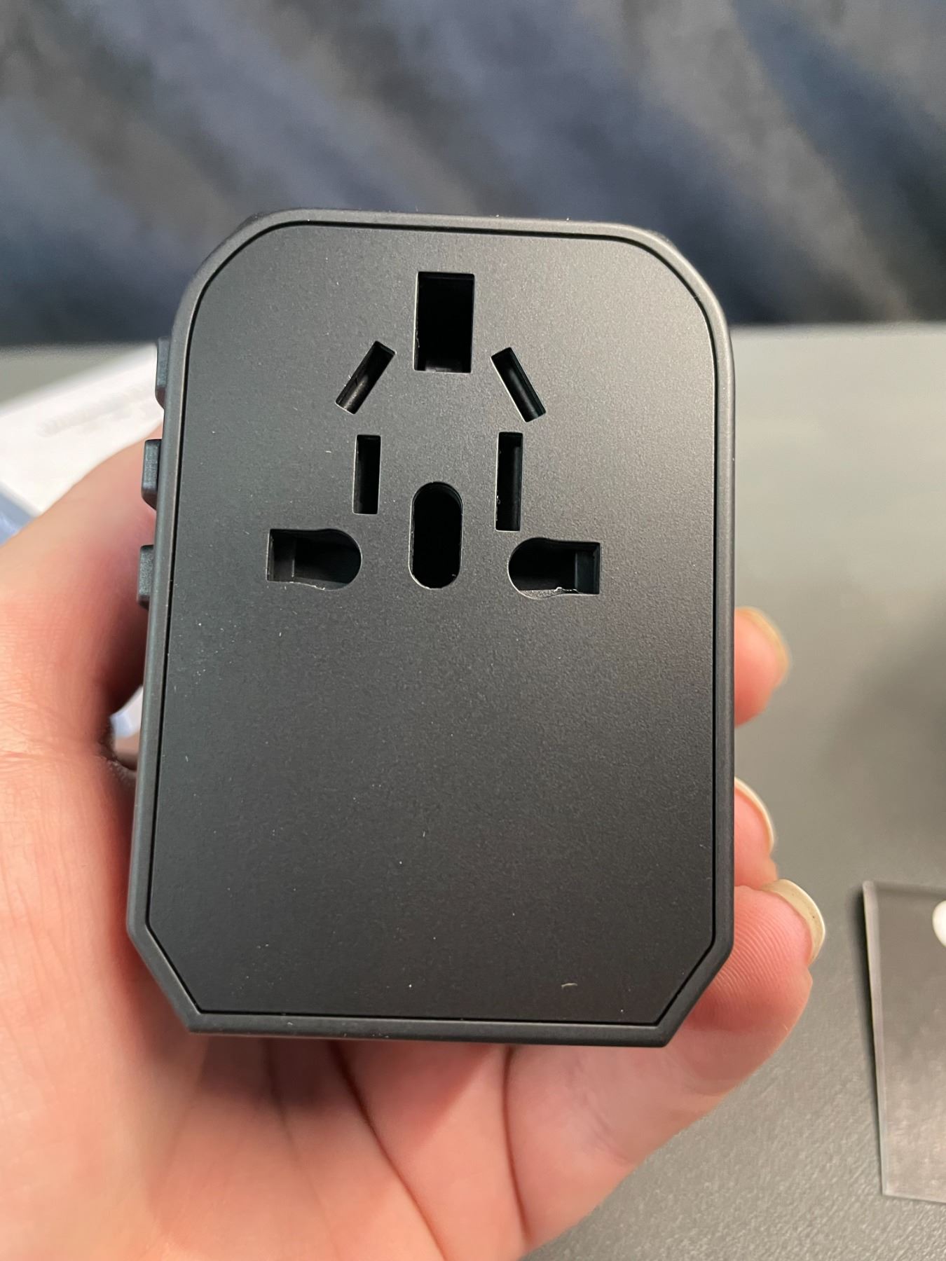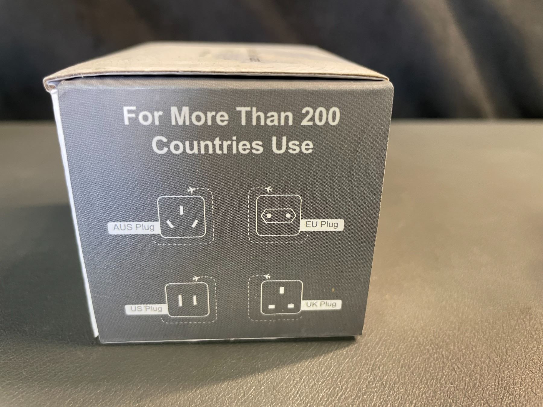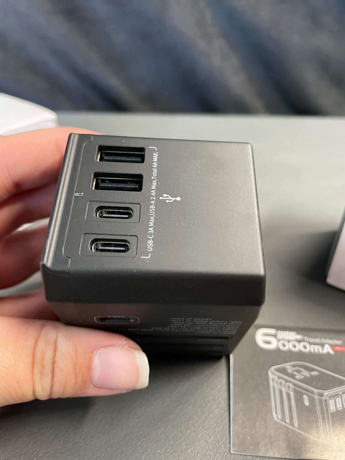 - multiple plugs/ports to fit when travelling to various places; for use in more than 200 countries!
