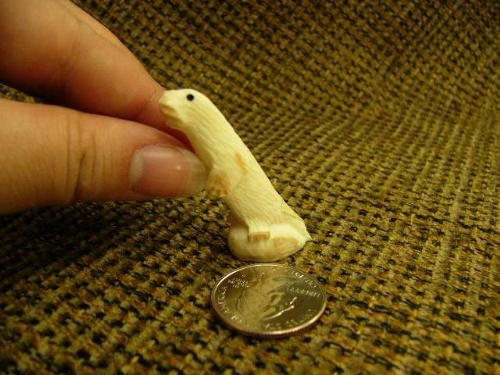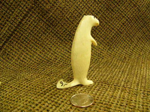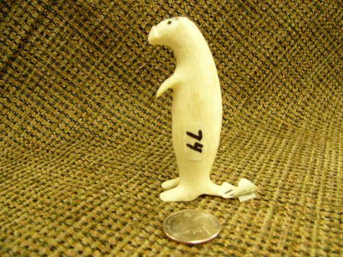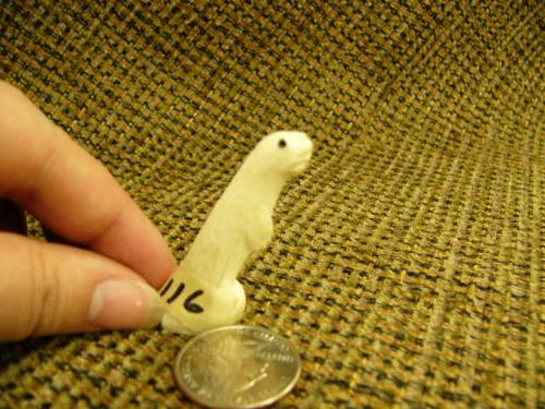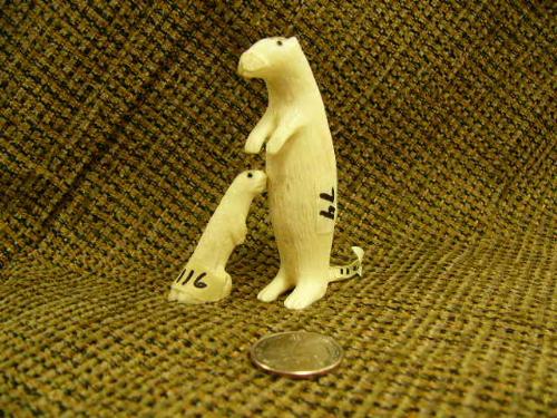 Lot of 2 carved ivory otters/mink- 3.25" tall by R.A.J; 1.75" tall (74)