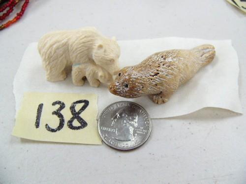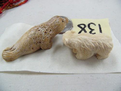 Lot of 2 carvings - Mammoth Ivory Bear 1.5" / Seal 2.5" (1)
