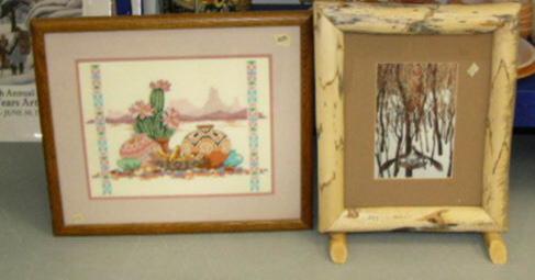 Lot of 2: framed and matted cross-stitch and uniquely framed Bev Doolittle print (178)