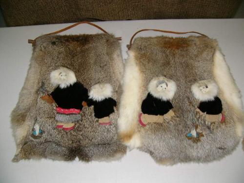 Lot of 2 fur wall hangings of mother and child and 2 children playing (152)