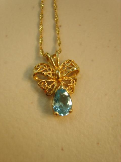 Lot of 2 gold chains with aquamarine pendant(266)