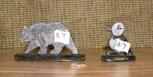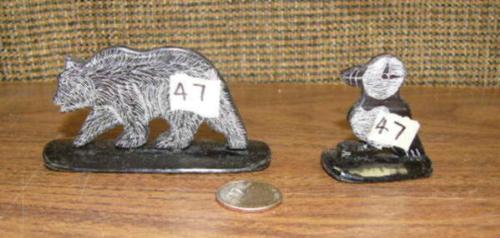 Lot of 2: scrimshawed baleen puffin and bear by Robert Crumley (2)