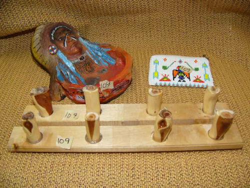 Lot of 2 wood wall pegs, Native American Chief dish and coin purse (2)