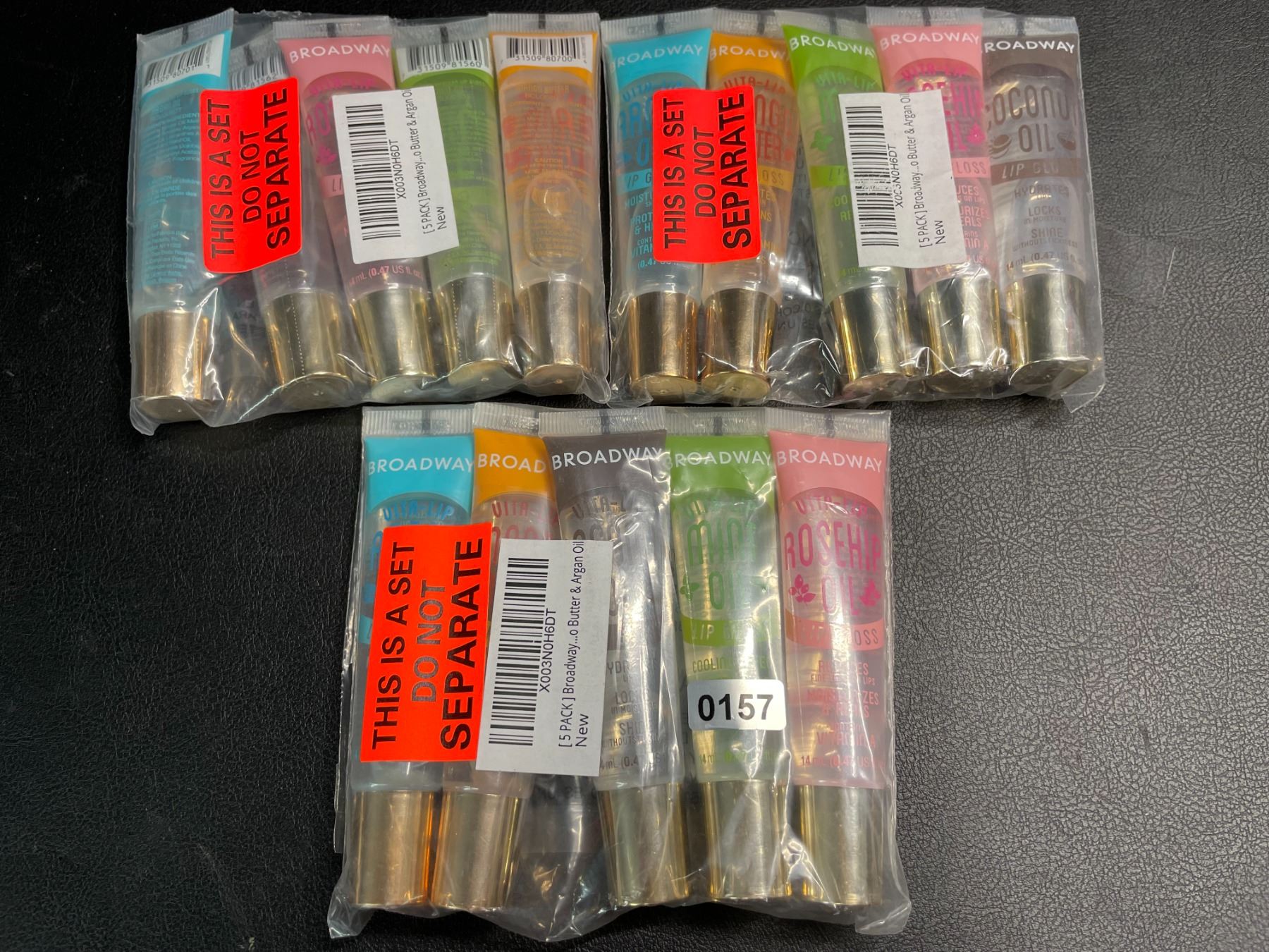 Lot of 3 Broadway Vita-Lip Clear Hydrating Lip Gloss Sets - 5PCS each - Brand New!