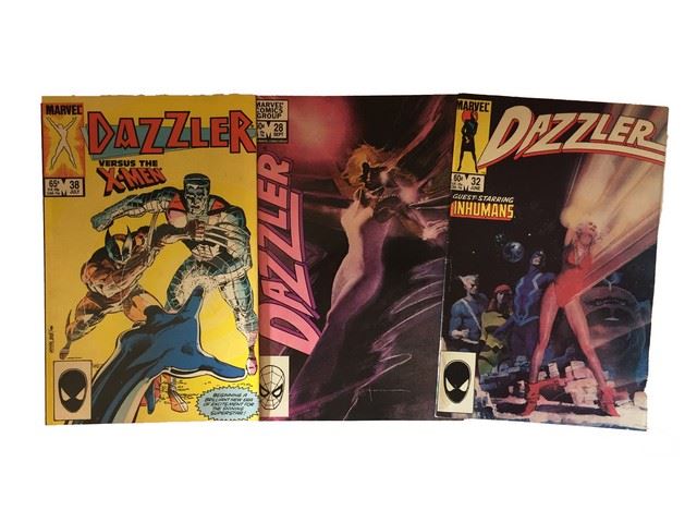 Set of 3 Dazzler comics: #28 (1983), #38 versus The X-Men and #32 June 1964. Slight wear on edges. No creases.