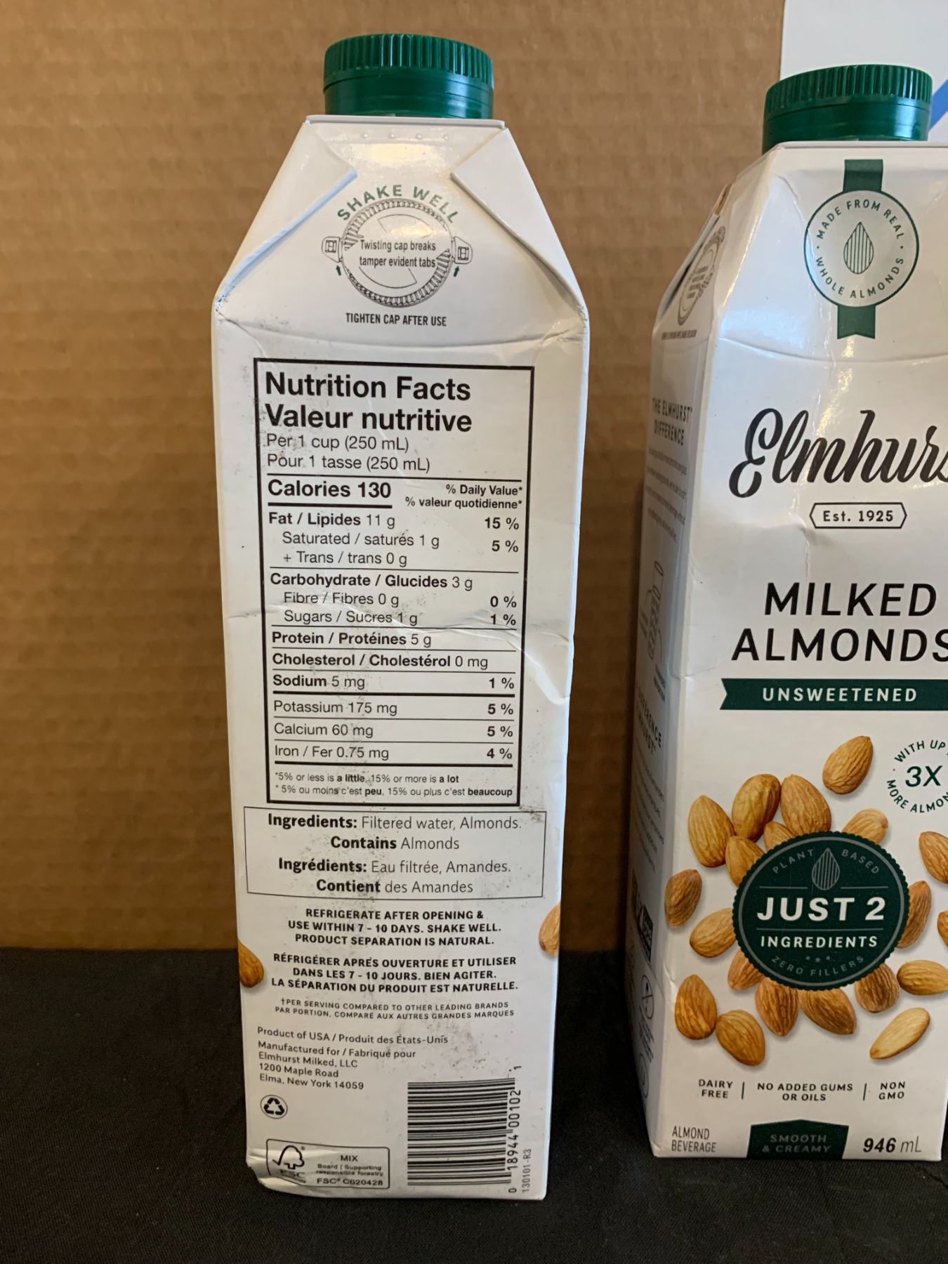 Lot of 3 Elmhurst Mikled Almonds Unsweetened 946ml BB Dec 31/2025