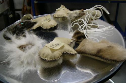 Lot of 3 Eskimo yo-yos made from seal skin (2)
