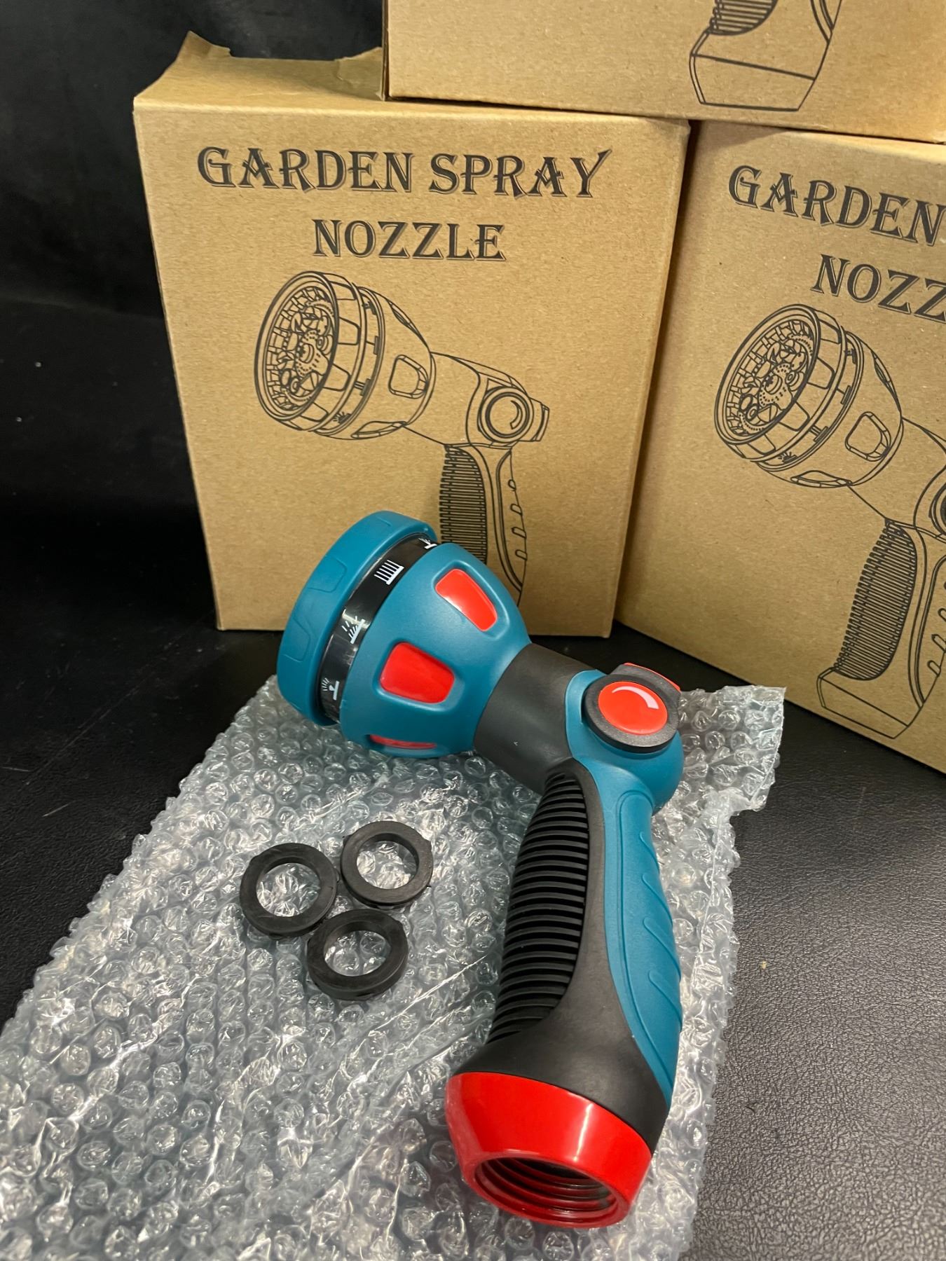 Lot of 3 Garden Hose Spray Nozzles w/ 10 Adjustable Spray Patterns - Brand New