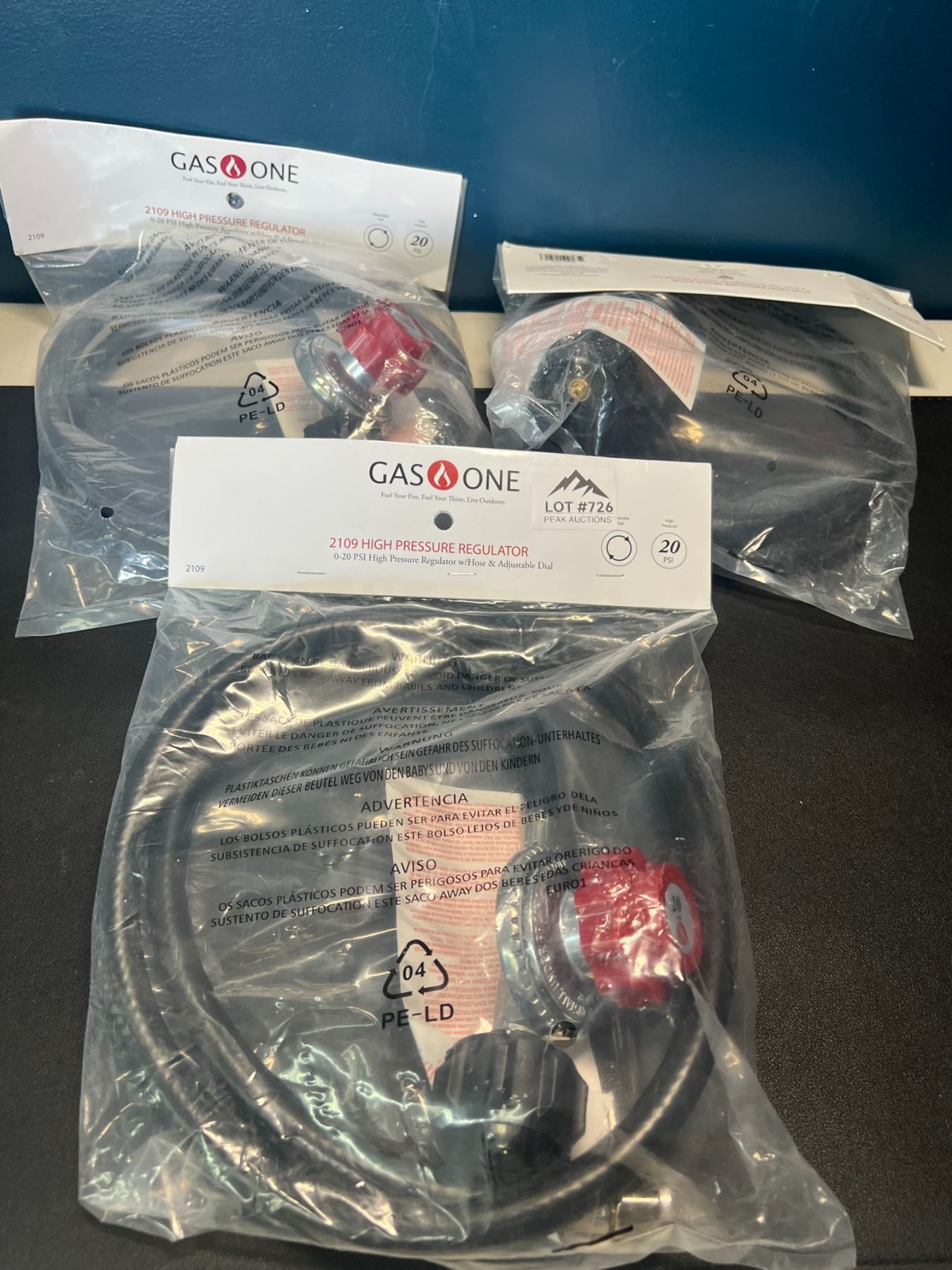 Lot of 3 GasOne 2109 High Pressure Regulators (0-20 PSI) w/ Hoses & Adjustable Dials