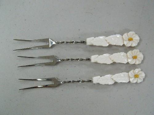 Lot of 3 Ivory and Gold Nugget Hors d'ouerves Forks (37)