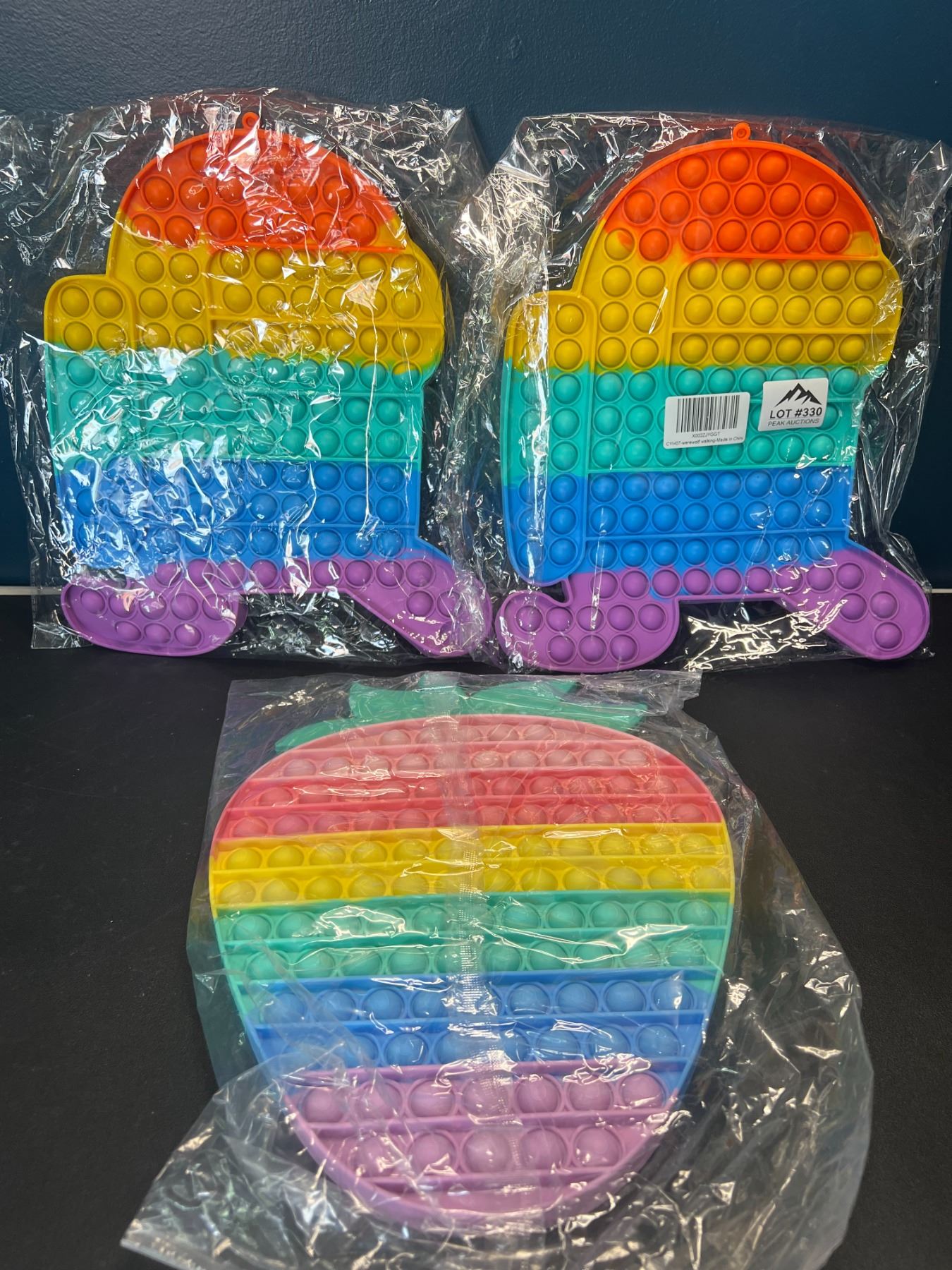 Lot of 3 Jumbo Size Pop-It/Fidget Toys - AmongUs & Strawberry Design - 12 inch size