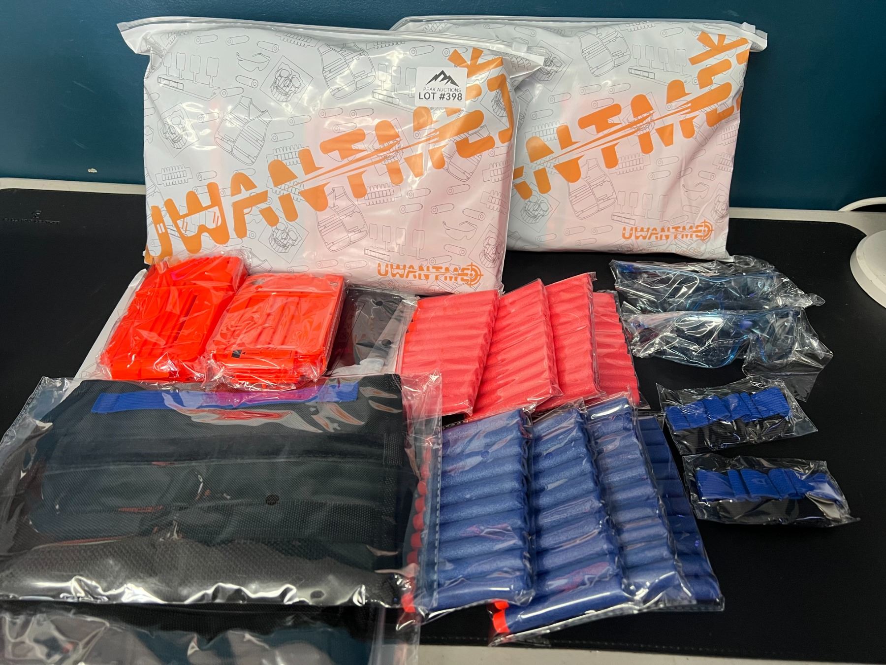 - includes 2x tactical vests, 2x dart pouches, 2x tactical mask, 2x reload clips, 40 blue nerf darts, 40 red nerf darts, and 2 wrist bands