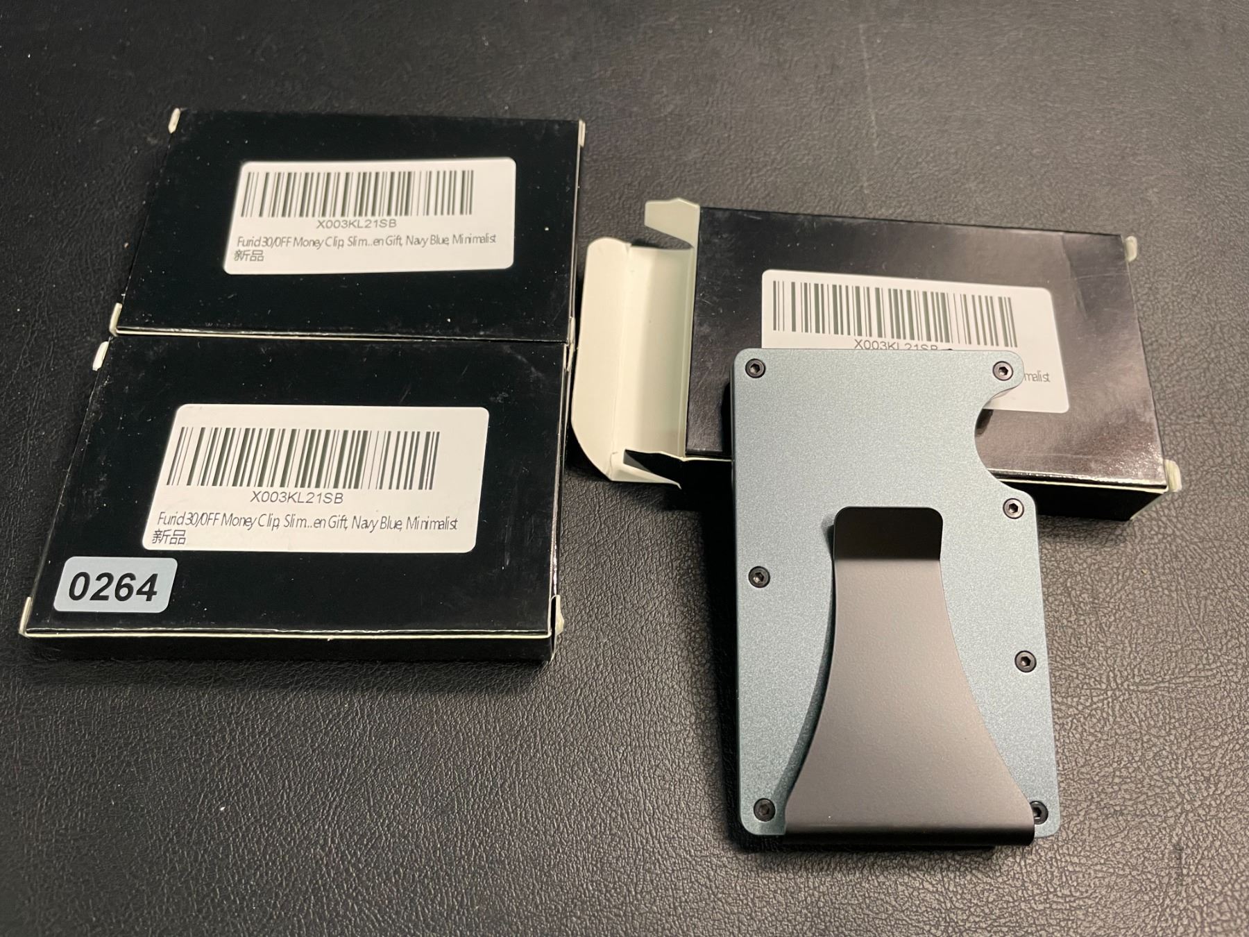 Lot of 3 Mens Slim Metal Minimalist-Style Wallets/Money Clips - Navy Blue