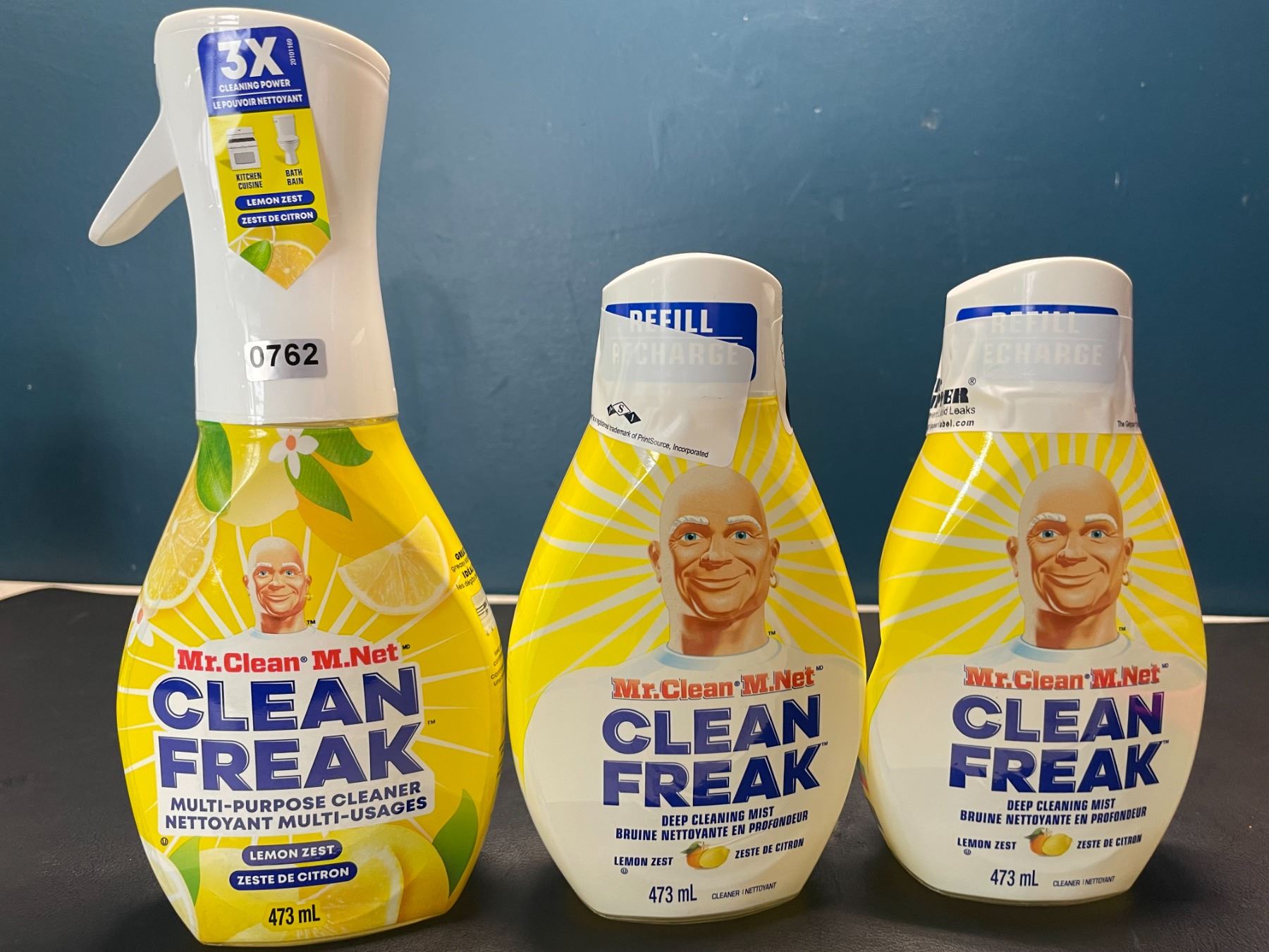 Lot of 3 Mr.Clean - Clean Freak - Multi-Purpose Cleaners - 1x Spray Bottle & 2x Extra Refills