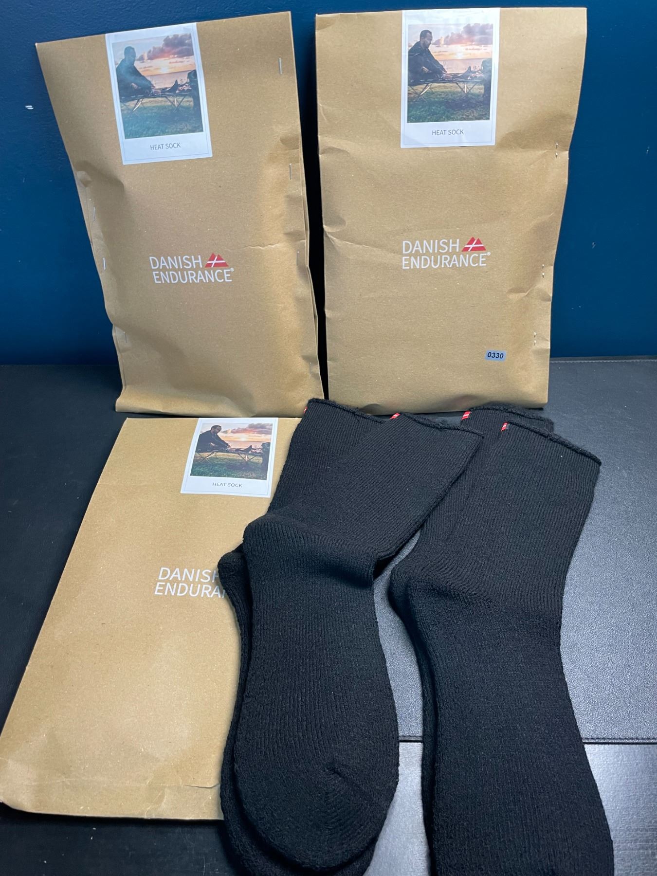 Lot of 3 Packs of Danish Endurance Unisex Thermal Heat Socks - 2 Pairs Per Pack/6 Total - New
