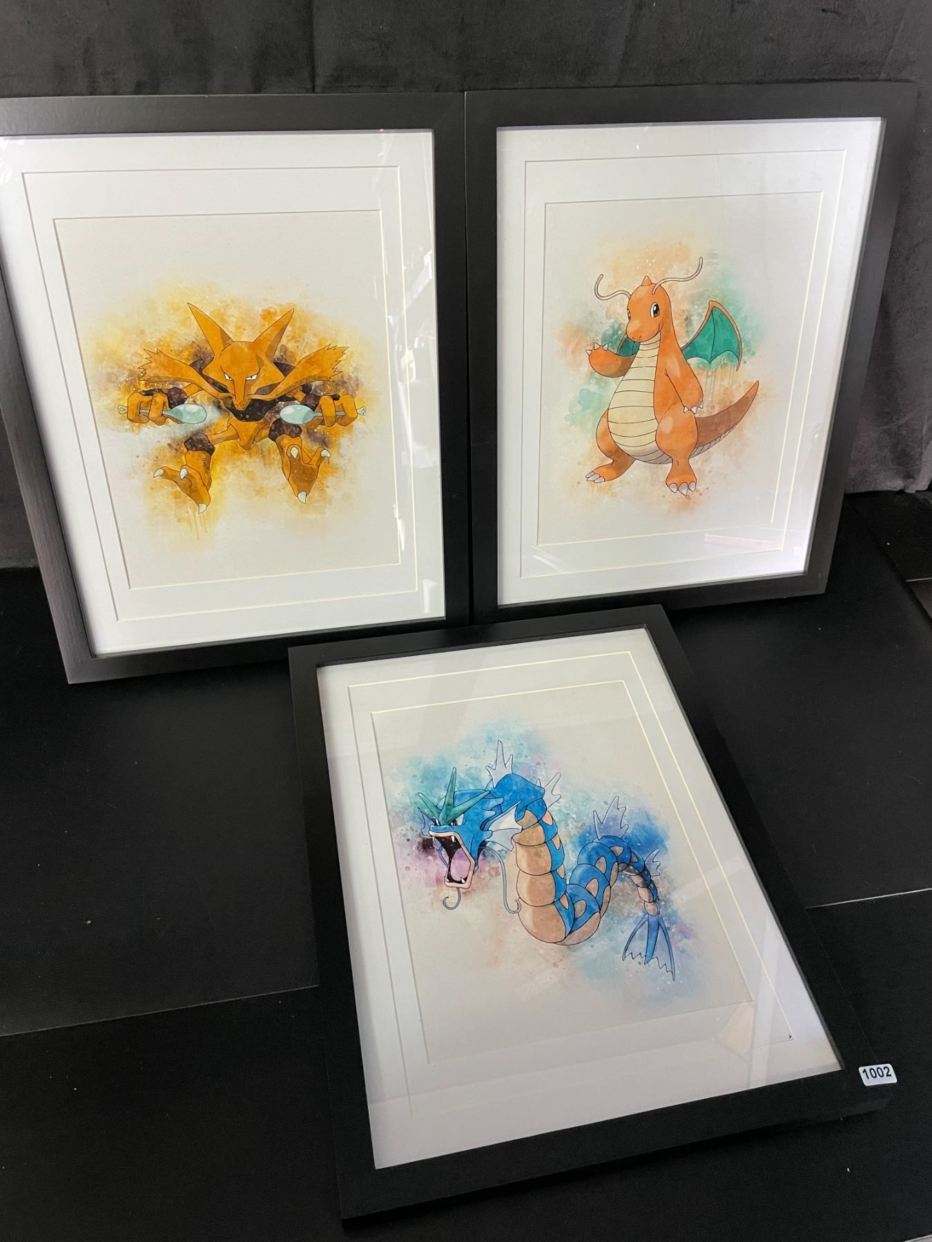 Lot of 3 Pokemon Framed Art Pieces - 12 x 15 Inch Large Size - Brand New