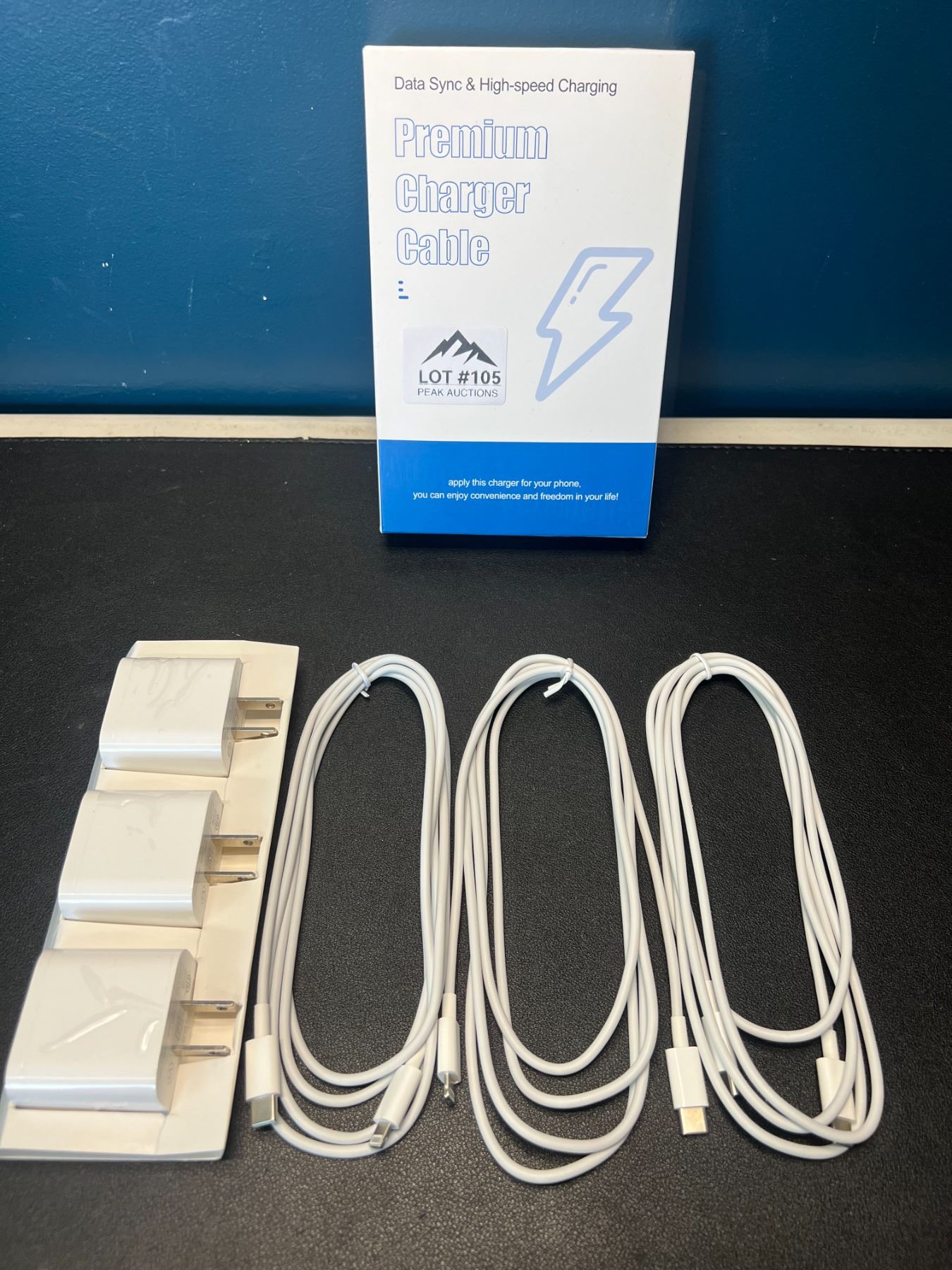 Lot of 3 Premium Fast-Charge Cables for Apple Devices - 3 Pack of Blocks/Cords