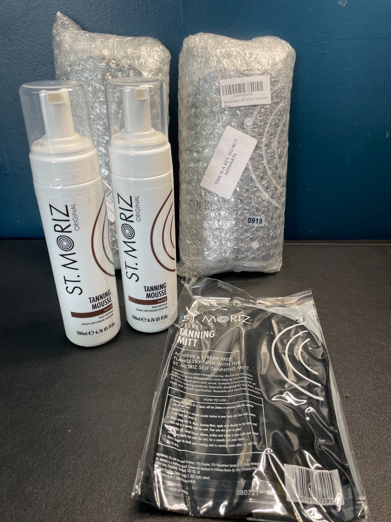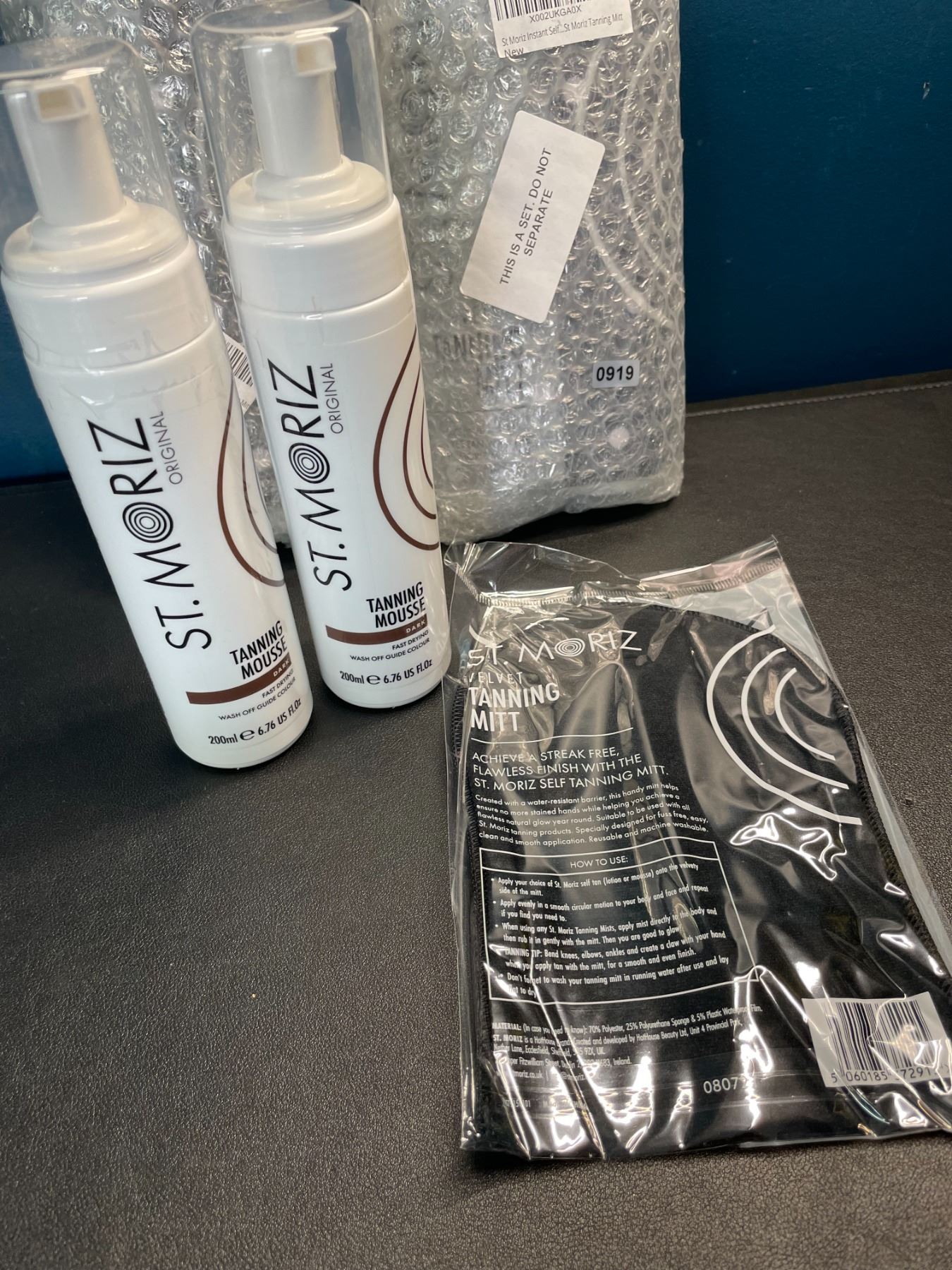 Lot of 3 Sets of St. Moriz Instant Self Tanning Mousse - Dark - 2x 200ml - W/ Applicator Mitt - New!