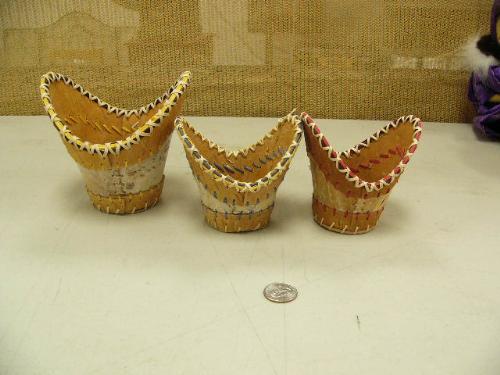 Lot of 3 birch bark bowls by Jennie Savage from Holy Cross, AK (229)