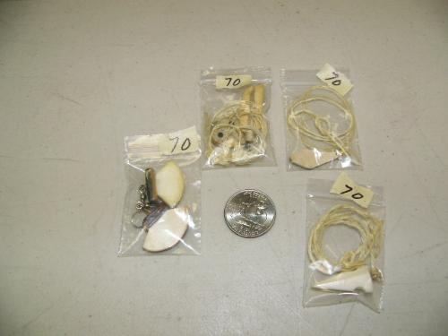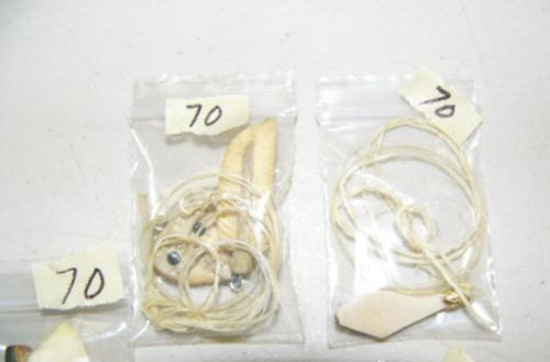 Lot of 3 ivory pendants on sinew and pair of ivory ulu earrings (2)