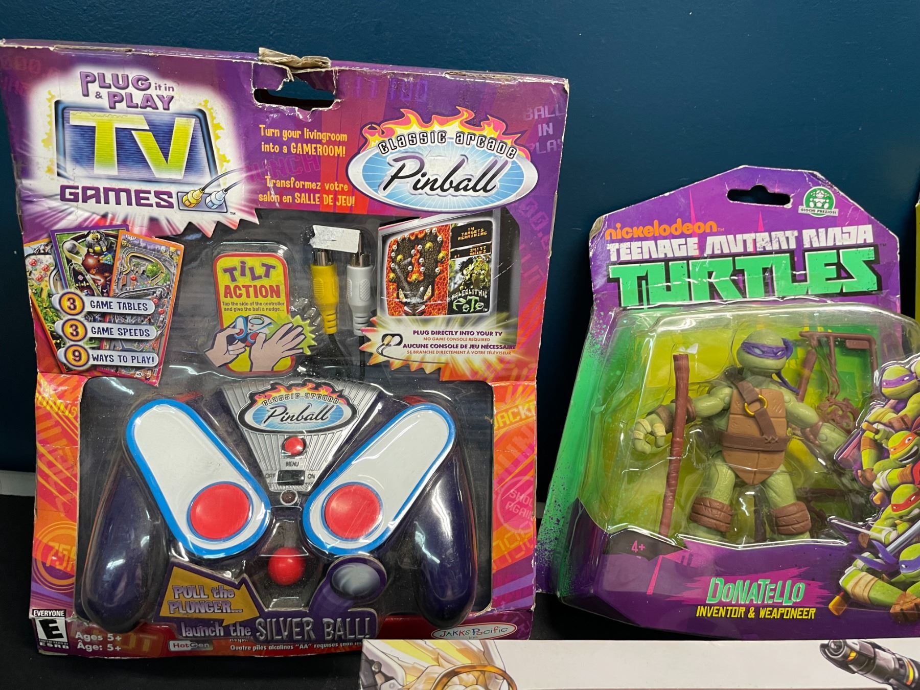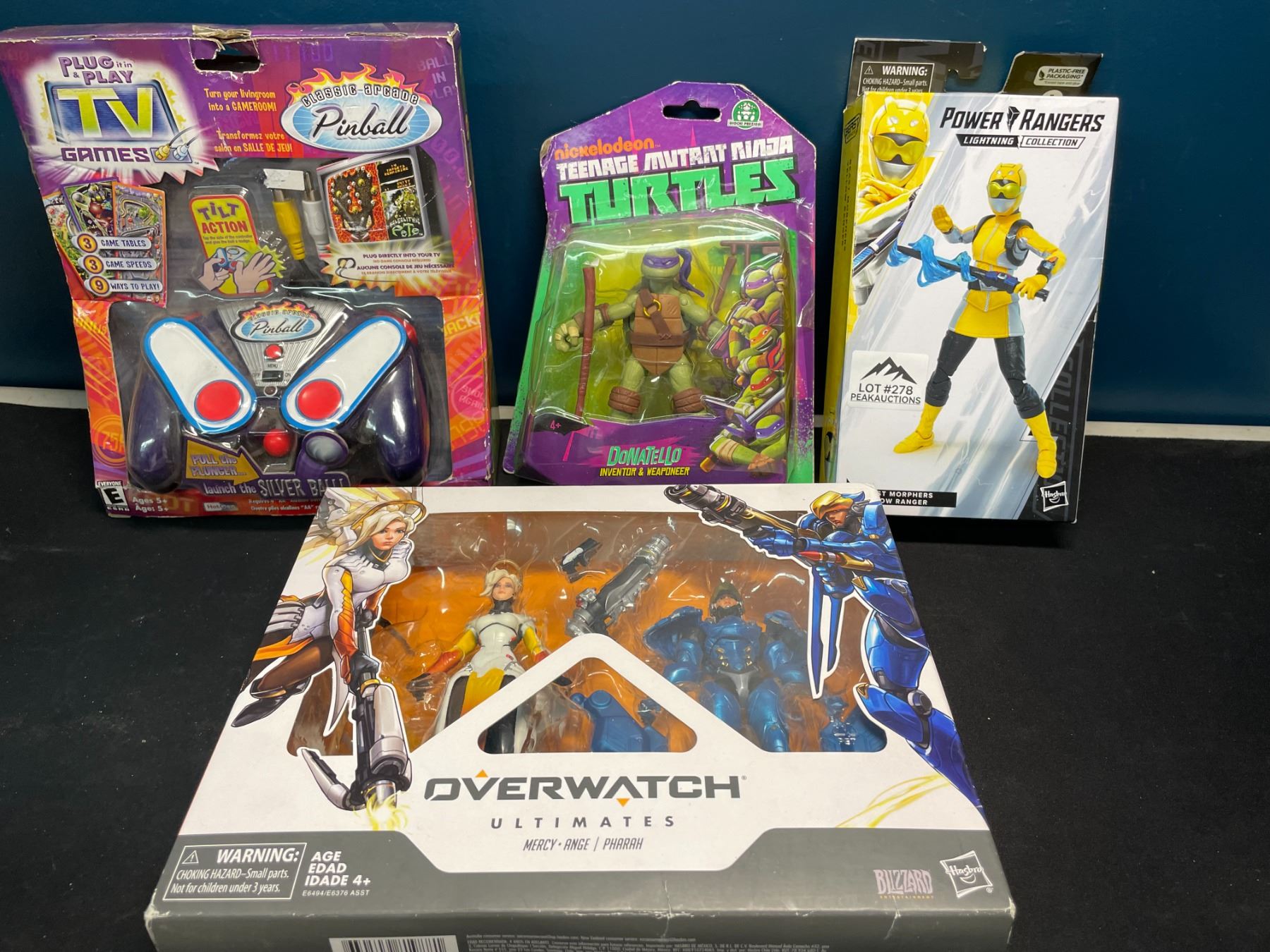 Lot of 4 Assorted Toys - Ninja Turtles, Power Ranger, Overwatch, & Pinball