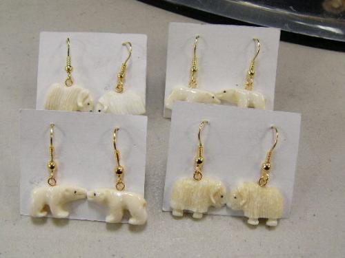Lot of 4 Ivory earrings by RB Kokuluk - 2 Musk Ox, 2 Polar bear (2)