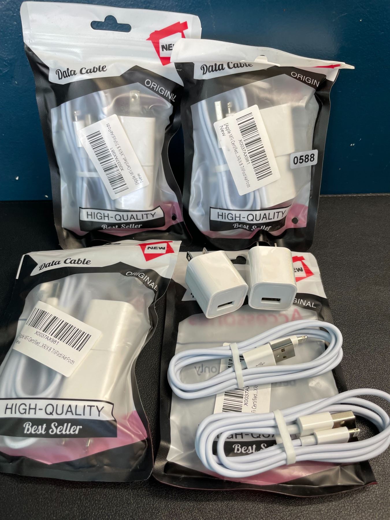 Lot of 4 Packs of Lightning Cords + Wall Block Chargers for Apple Devices - 2 Sets Each/8 Total -NEW