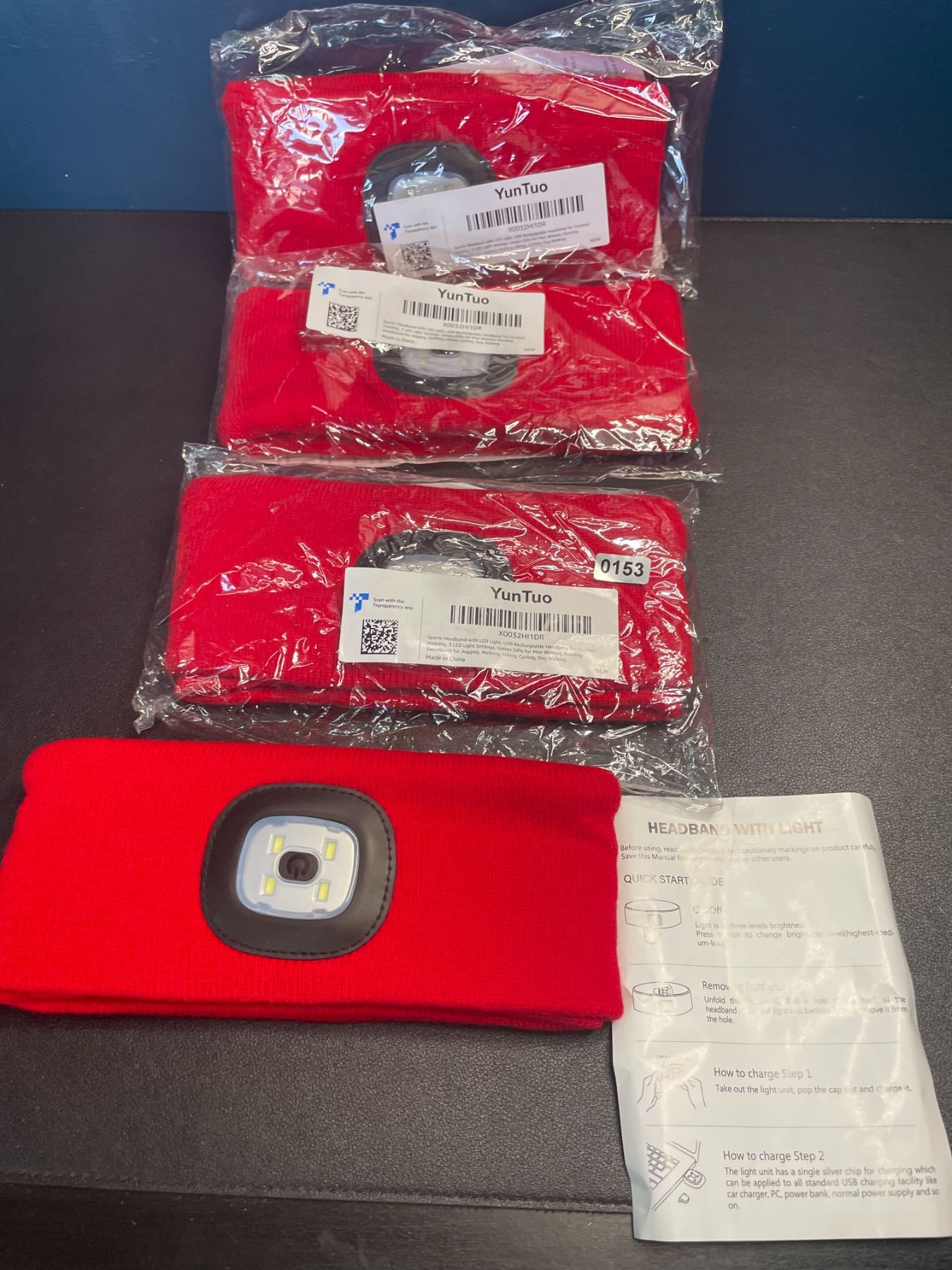 Lot of 4 Sports Headbands with LED Light - USB Rechargeable - Brand New