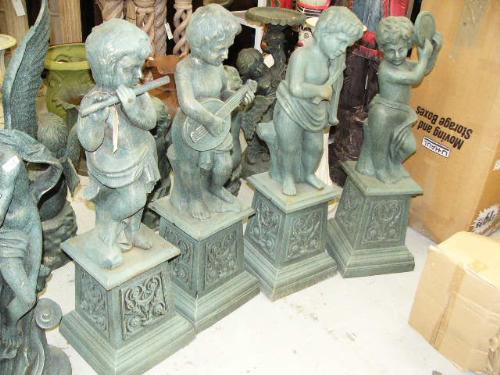 Lot of 4 children cast iron figures playing various instruments- each approx. 45" tall (100)