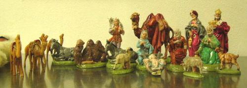 Lot of: 4 wood camels and 14 piece Nativity Set (159)