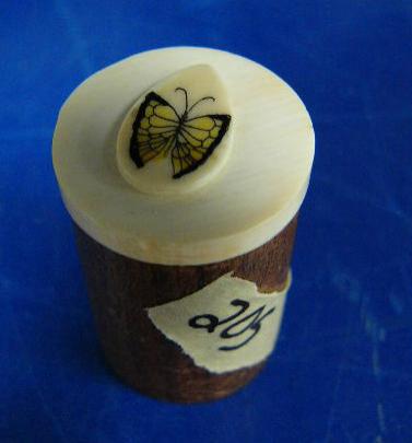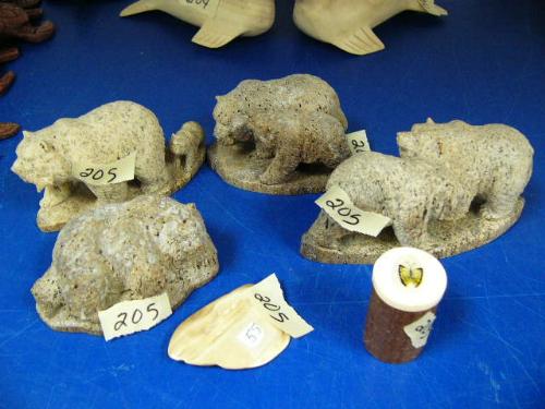 Lot of 5: 4 carved bone bears and 1 wood box with ivory top ()