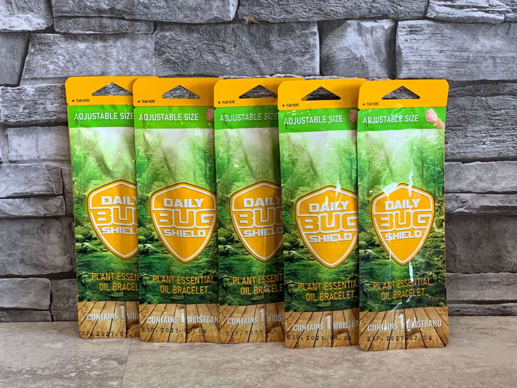 Lot of 5 Adjustable Daily Bug Shield Wristbands - Plant Essential Oil