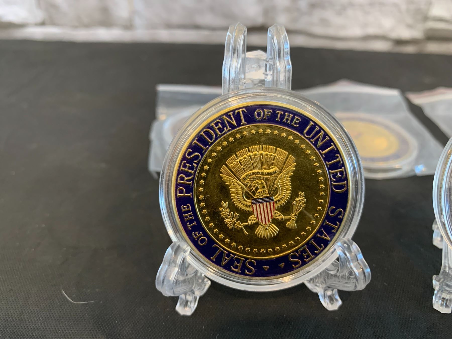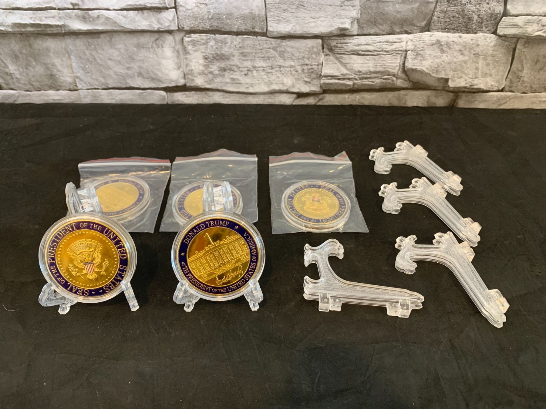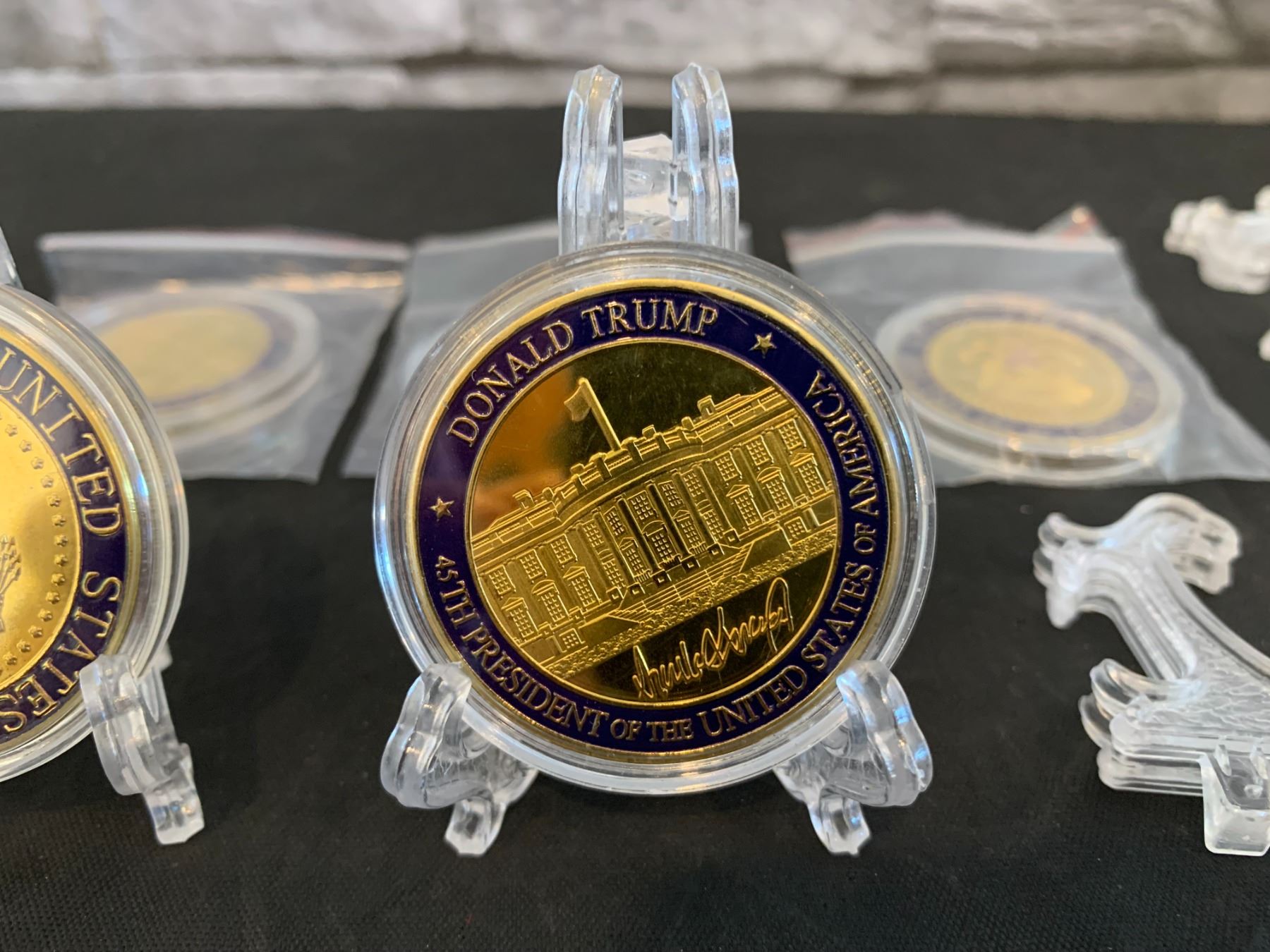 Lot of 5 Donald Trump 45 President Coins With Stands