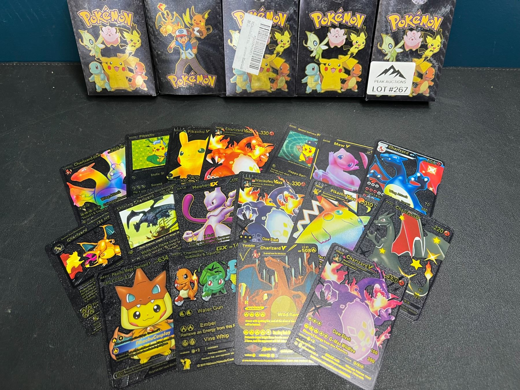 - foil fan art pokemon cards featuring many different pokemon; great for kids, not for collecting purposes