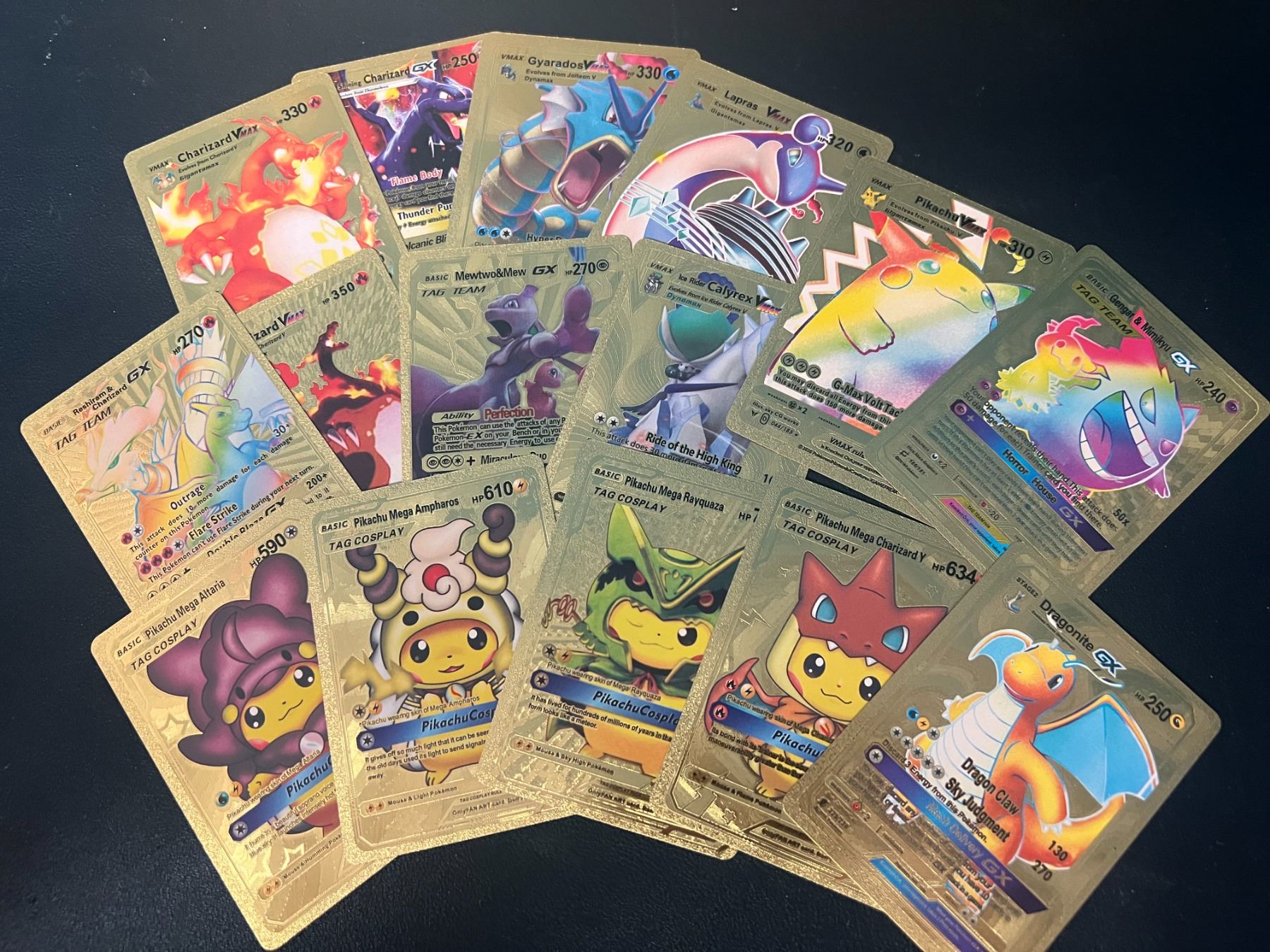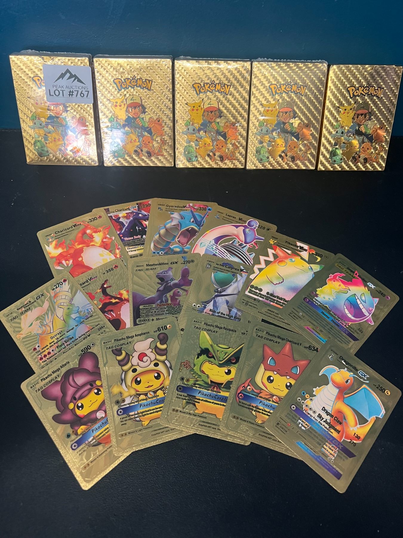 Lot of 5 Packs of Fan Art Gold Foil Pokemon Cards