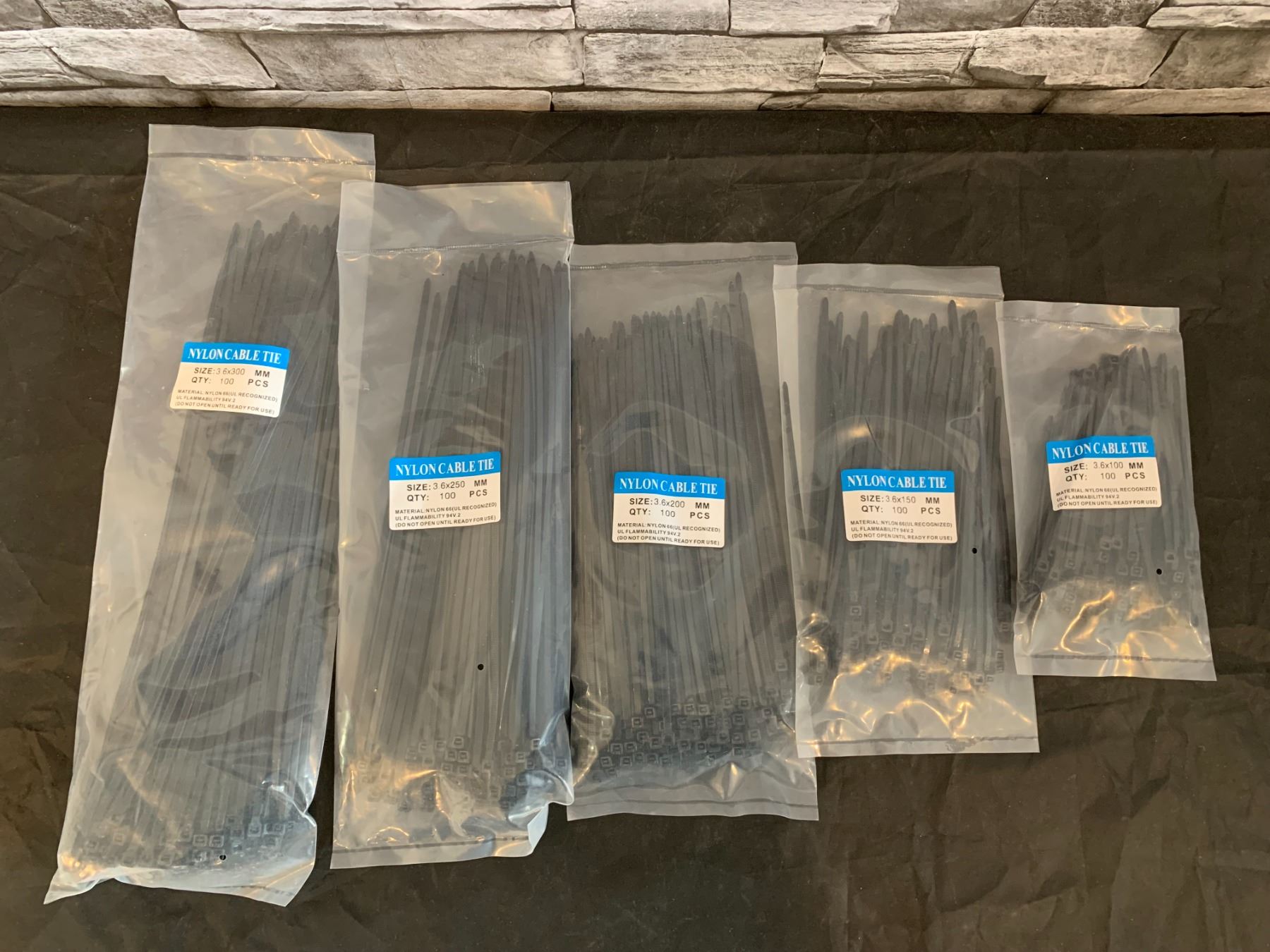 Lot of 5 Sets of Zip Ties - Assorted Sizes - 500pcs Total