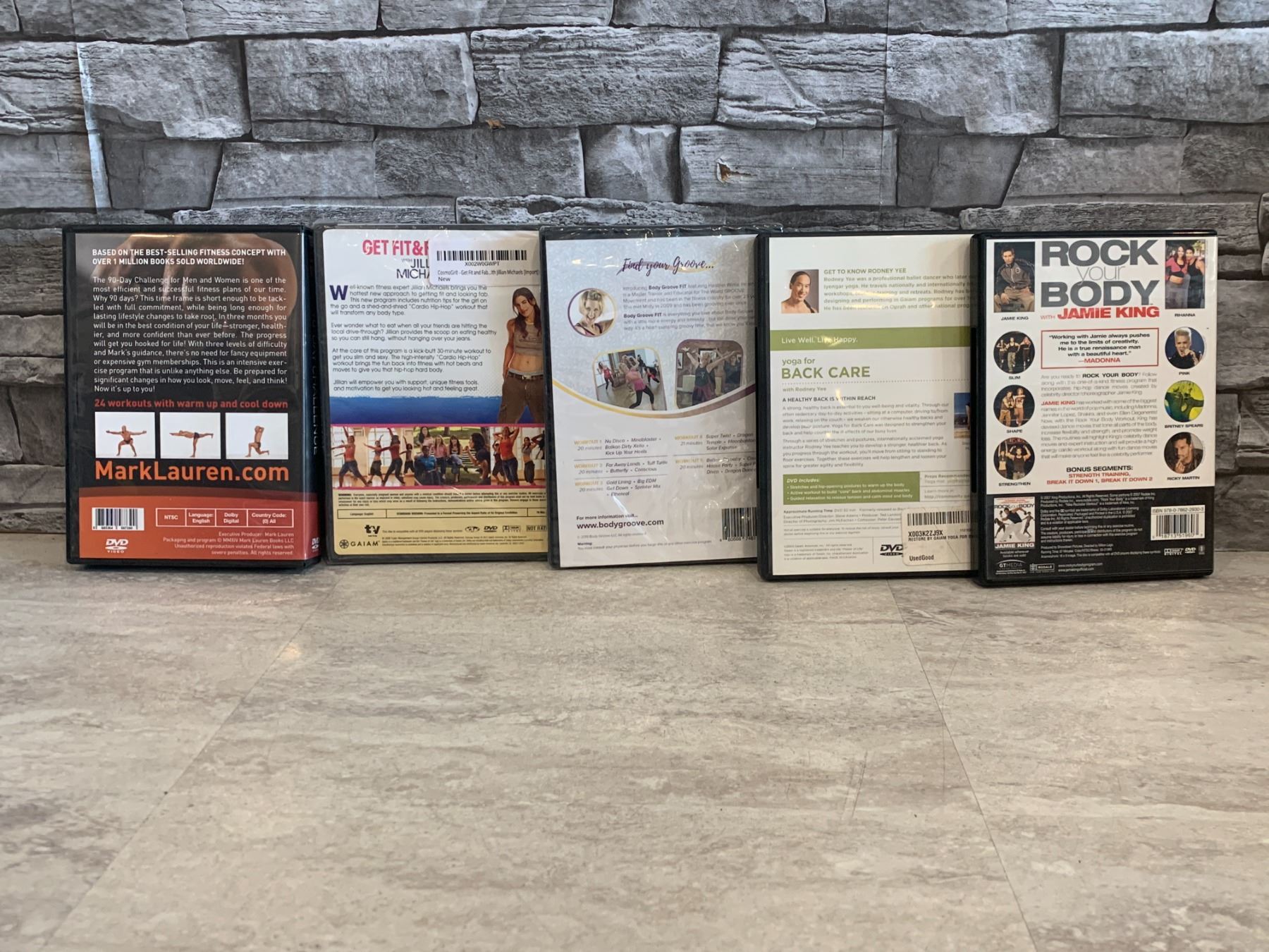 Lot of 5 Workout DVDs - 90 Day Challenge , Get Fit & Fab with Jillian Michaels, Body Groove Fit, Yog