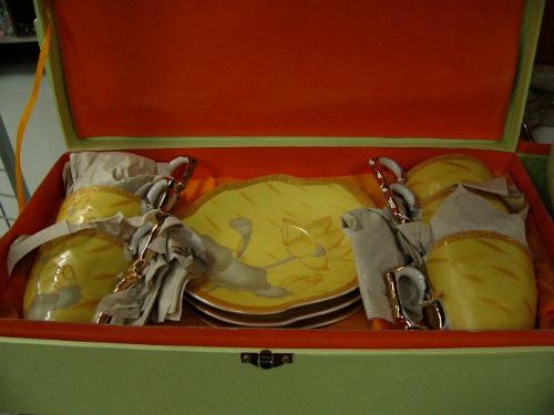 Lot of 5 sets of cups & sauces - gold leaf & flower design - broken handles (8888)