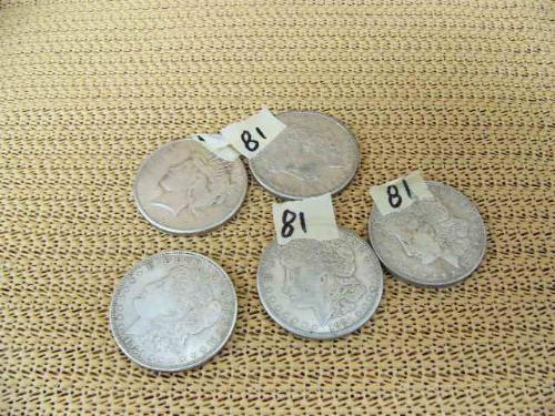 Lot of 5 silver dollars: 4 - 1921, 1 - 1922 (2)