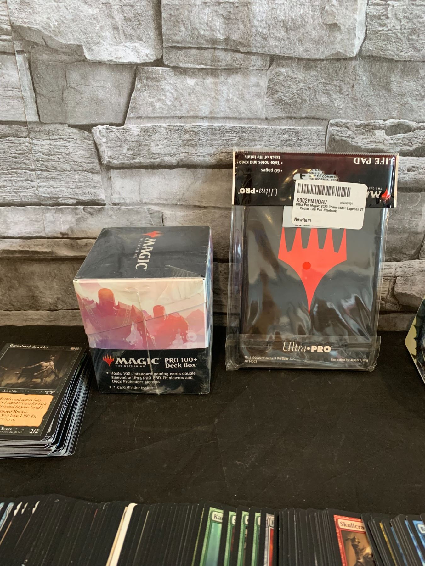 Lot of 500+ Magic the Gathering Trading Cards + Ultra PRO Deck Box & Life Pad