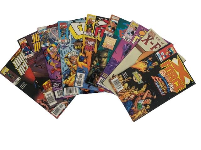 Lot of 5 X-Force comics from Marvel comics featuring issues #75, #77, #80, #81, and #83 From 1998. All in good condition. Also included are two Comics from Cable #54 and 55 from May and June 1998, in good condition. Also included are two comics from Journey into Mystery #519 and 521 from April and June 1998. Issue #519 is damaged at the top right corner. All of these comics come from a former Marvel employee.