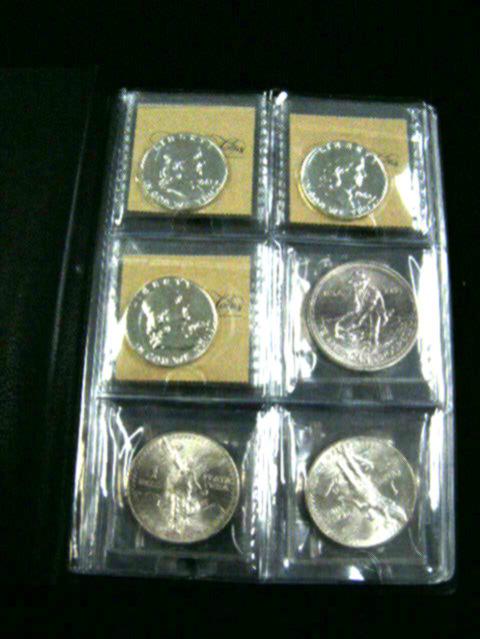 Lot of 7 coins: 3 - proof Ben Franklin 1/2 dollars, 61, 62, 63 and 4 - 1 oz silver coins (194)