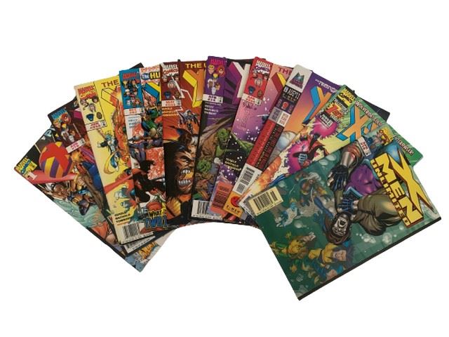 Lot of 9 X-Men comics including #18 from April 1997, #1 from November 1998 (Uberators), #11 from August 1998 (The manga), #354 from April 1998 – The Uncanny X-Men versus Sauron Exclamation, #74 April 1998, A Day in Purgatory! The Uncanny X-Men Show Down with Alpha Flight #355 from May 1998, The Hunt for Xavier part 2 of 6, issue # 82, December 1998, The Uncanny X-Men #356 from June 1998 and the X-Men PS 1 – War part two of two #78 from August 1998. Also included is Pint Size X Babies #1 from August 1998. All in good condition. From the collection of a former Marvel employee.