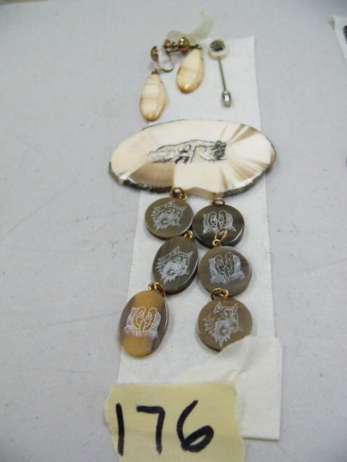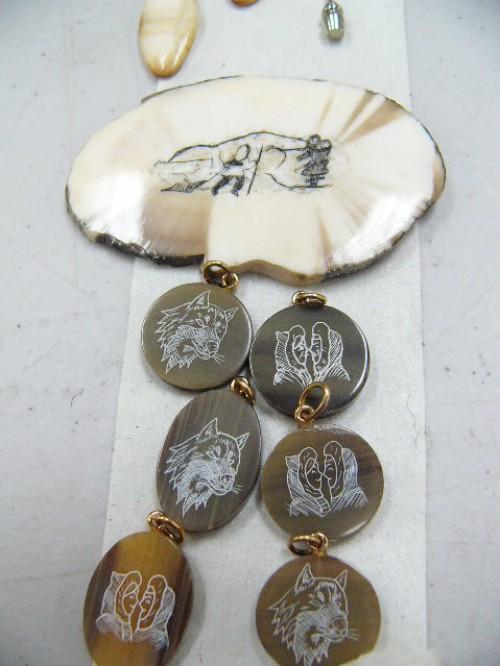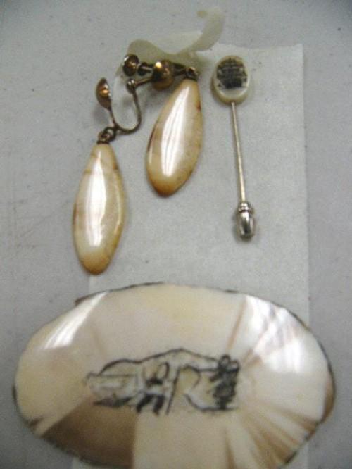 Lot of: 9 Scrimshawed Pieces Ivory Earrings (555)