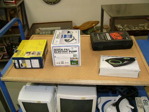 Lot of: Floodlight, electric pump, electric putting cup, emergency cob radio and cork board(172)