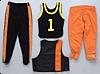 Original costumes consisting of four-pieces worn in the 1975 film, "Rollerball". The costumes include: a pair of black sweatpants with an orange stripe on each side; a black tank top with yellow trim and a yellow number "1"; a black vest with an orange stripe on one side; and a pair of orange sweatpants with kneepads stitched inside the sweatpants. Accompanied by a LOA describing the provenance of the costumes.